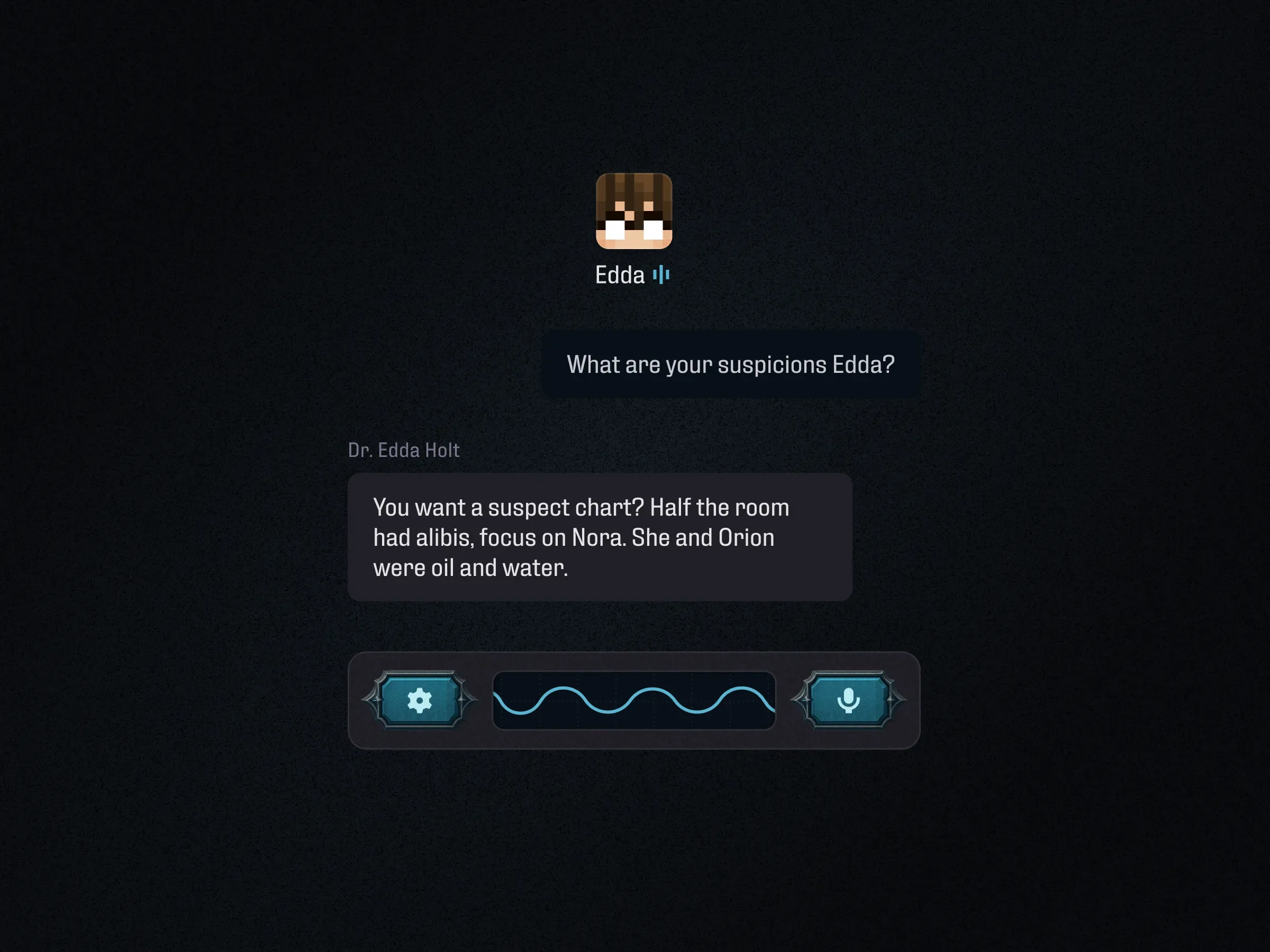 The companion web app connects your voice and theirs. It’s where conversations happen, NPCs speak, and the mystery come to life.