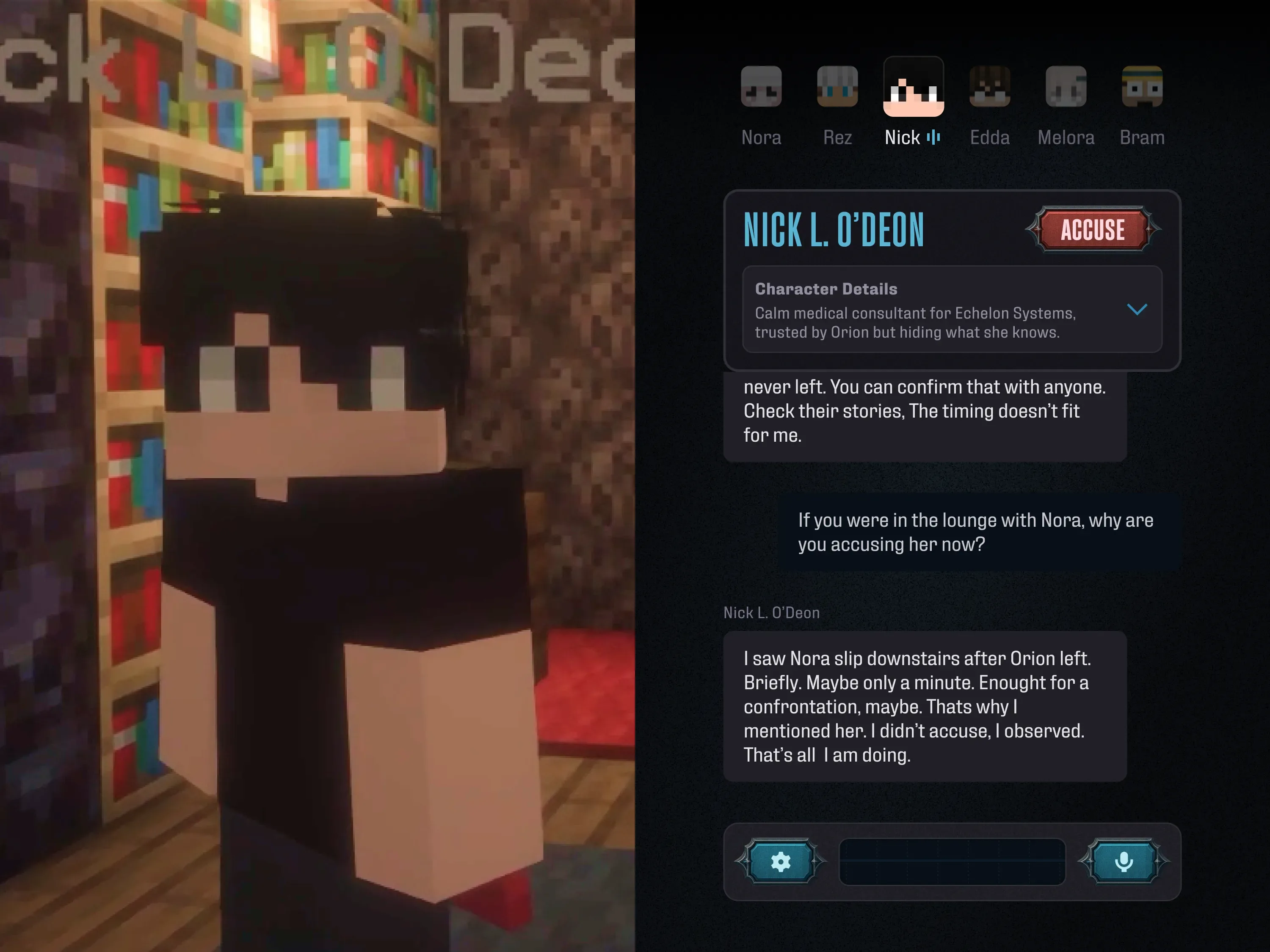 An emotionally intelligent Minecraft mystery where you build rapport to uncover the truth.